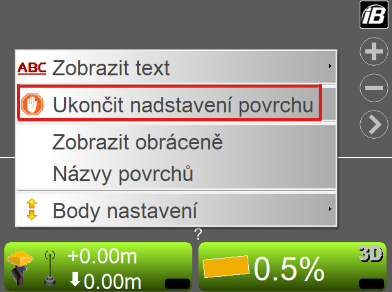 2. Vyberte možnost "Ukončit nadstavení povrchu".