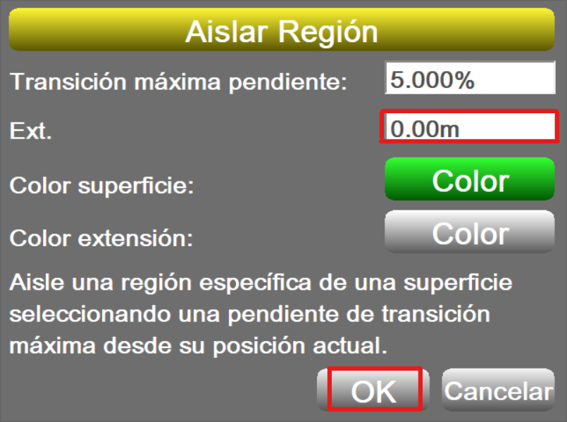 3. En la pantalla "Aislar Región", introduzca la distancia que desea extender en el borde del grado extendido.